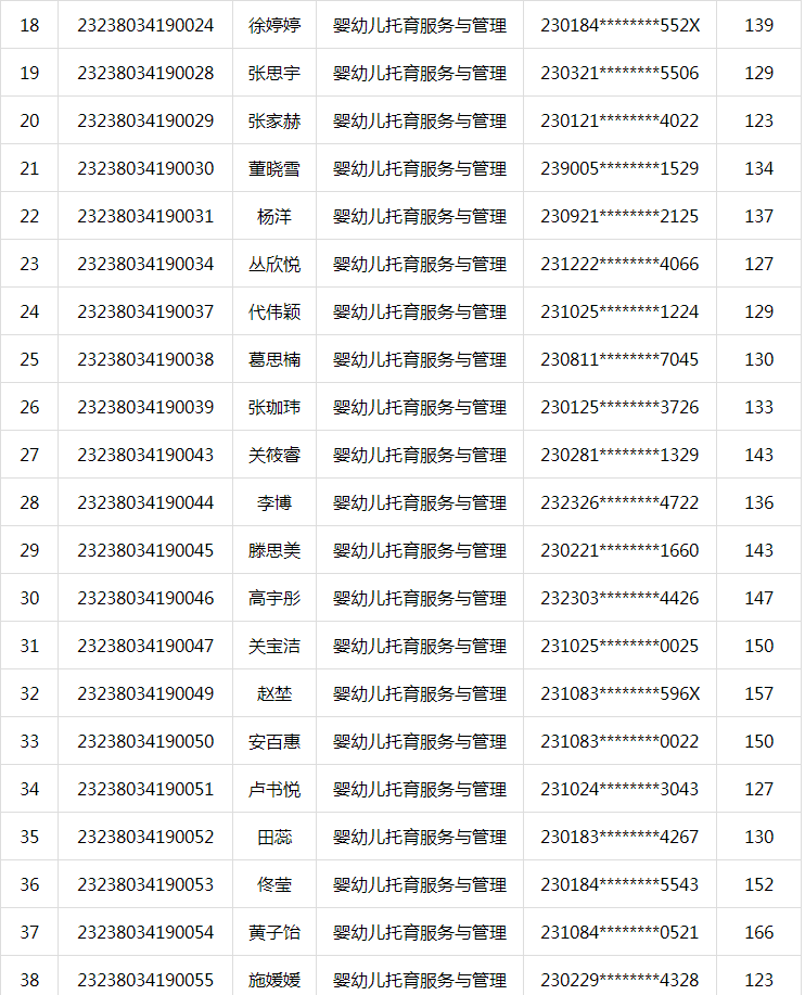 黑龙江幼儿师范高等专科学校2023年单招录取名单